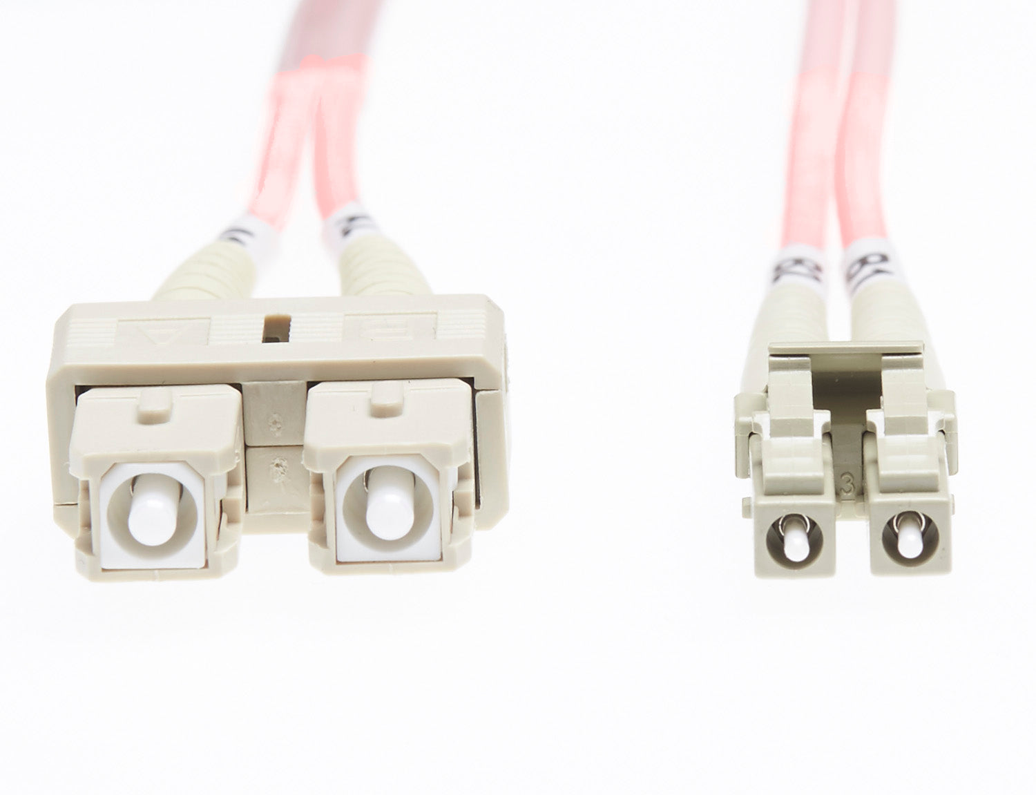 5m LC-SC OM1 Multimode Fibre Optic Cable: Salmon Pink