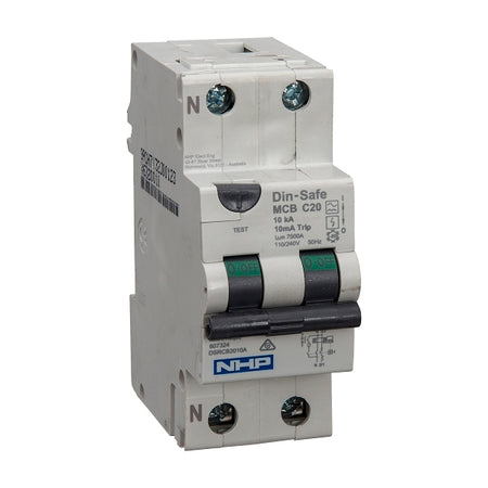 NHP DIN-T Residual Current Device Short Body w/ Overcurrent 10kA 6A 1Pole and N C Curve 10mA Type A***EMAIL/TEXT FOR PRICING***