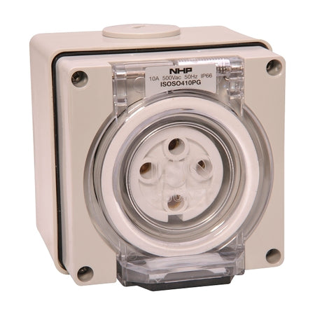 NHP ISO Socket Outlet, 4 Round Pins 10A 500V AC, w/ Base, Grey***EMAIL/TEXT FOR PRICING***