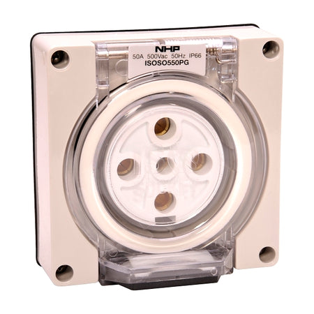 NHP ISO Socket Outlet, 5 Round Pins 50A 500V AC, w/o Base, Grey***EMAIL/TEXT FOR PRICING***