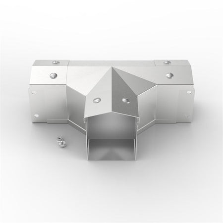 Electrix® 15° Apex 盖线槽 90° 角板三通采用 304 - V2A - 1.4301 不锈钢制成,用于在安装过程中改变方向,并为线槽布线提供额外的出口。
