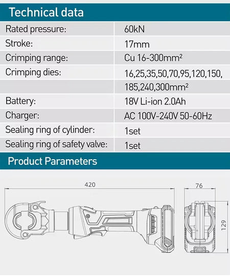 配备澳大利亚标准 CU 压接模具(16-300mm²):