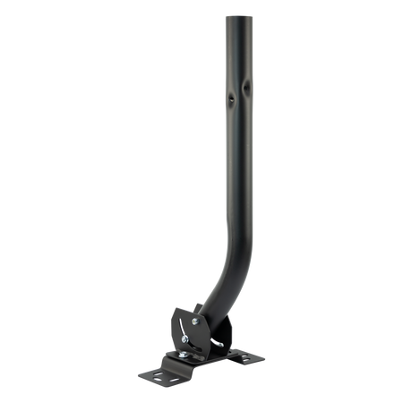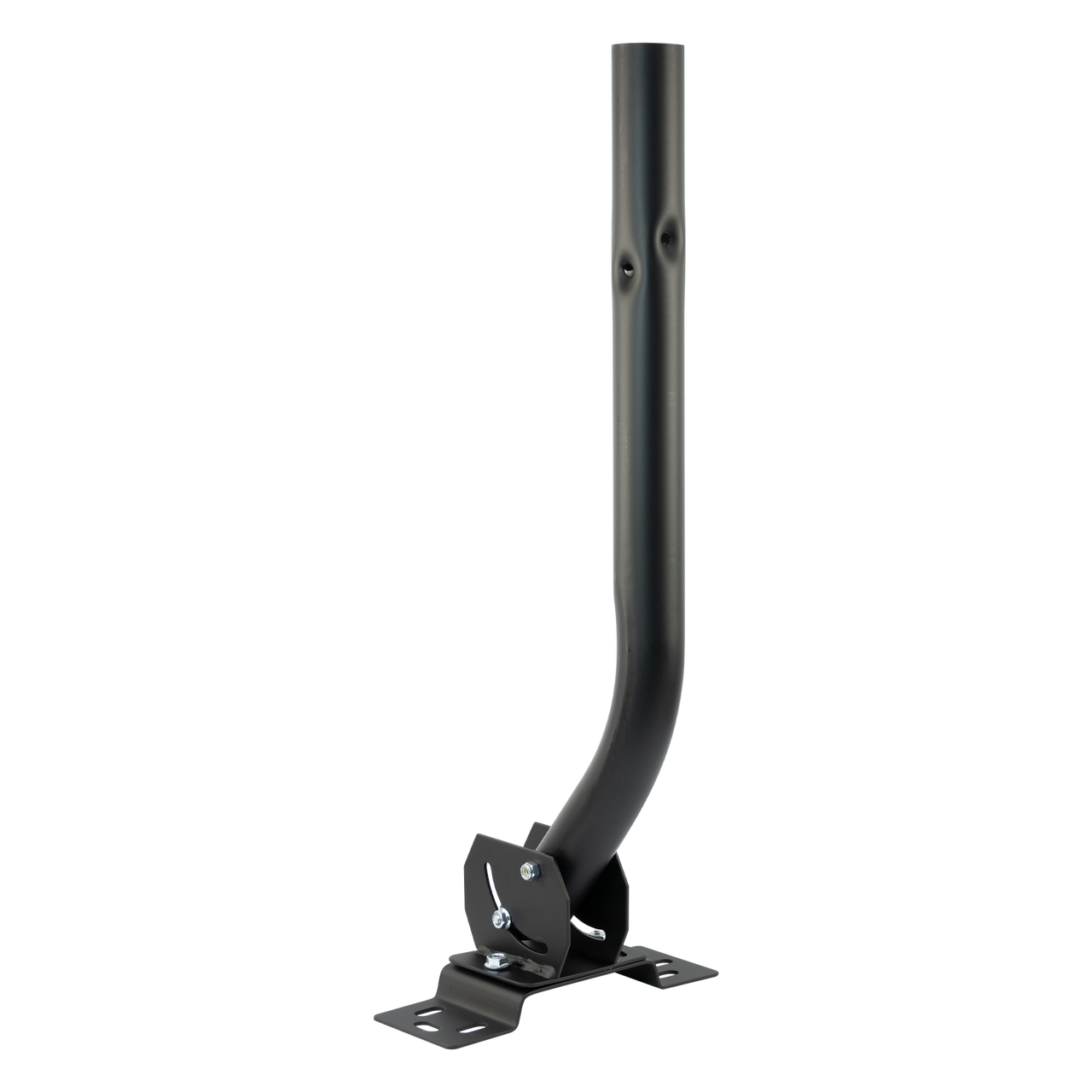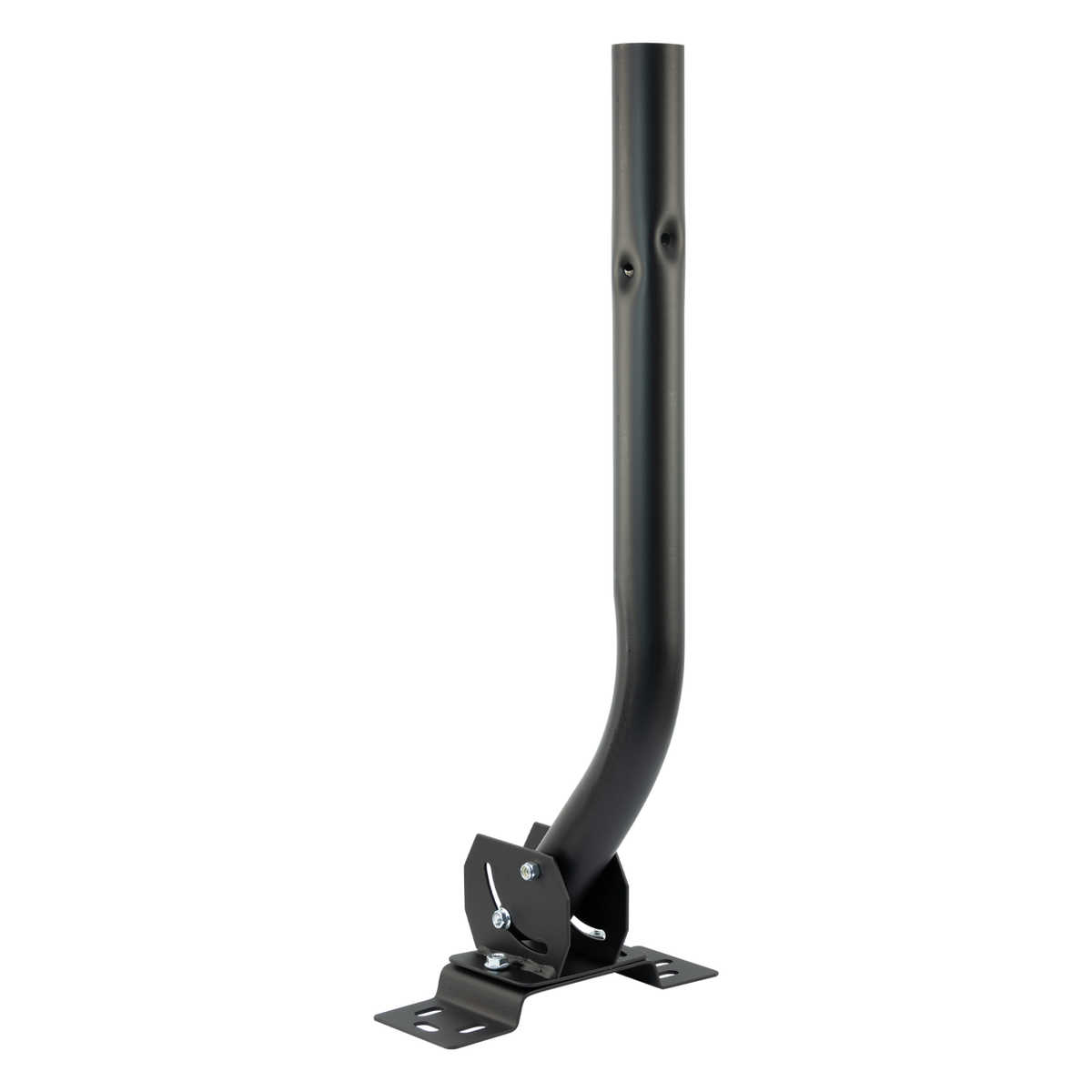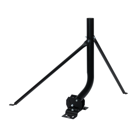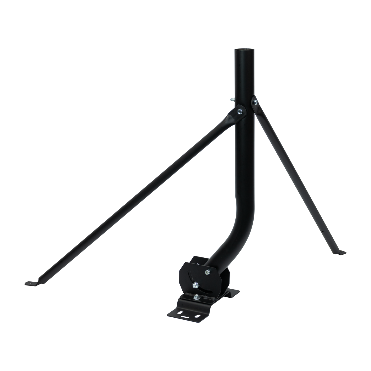 The Hills Antenna FB607316 Satellite Universal Mount is the latest evolution of this model. It has been designed for multiple installation applications. The bent pole now has a 44.5mm diameter with no swaged top section, making it ideal for use with the FB607313 Starlink Pole Adaptor. The baseplate has been improved with slotted mounting holes to accommodate various metal roof profiles. The included cyclone washers and rubber seals provide a sturdy surface for the connection of the two adjustable stay bars. The FB607316 is made from galvanised steel and powder-coated for extra protection. Its unique black powder-coated finish blends in nicely with its surroundings. It can be used with or without the included telescopic stay bars. Either option offers a sturdy mount for different types of satellite dishes and antennas. All accessories are included in the kit for easy assembly.