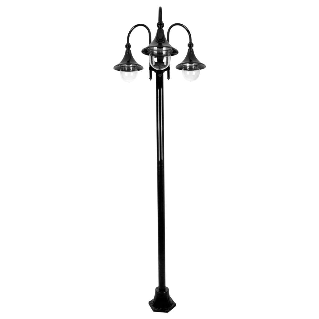 Monaco 3 light die-cast aluminium and moulded acrylic lens triple head 2.4m post light. Made in Italy, assembled and powder coated in Australia.