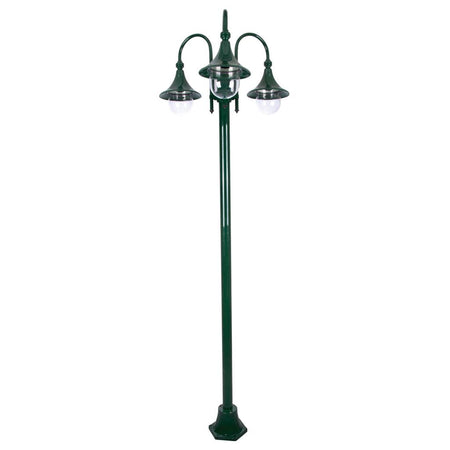 Monaco 3 light die-cast aluminium and moulded acrylic lens triple head 2.4m post light. Made in Italy, assembled and powder coated in Australia.