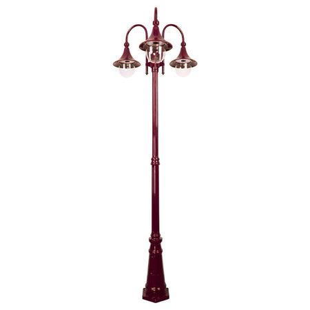 Monaco 3 light die-cast aluminium and moulded acrylic lens triple head 2.35m post light. Made in Italy, assembled and powder coated in Australia.