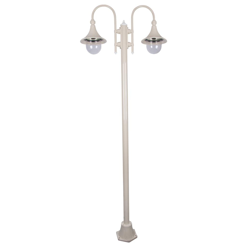 Monaco 2 light die-cast aluminium and moulded acrylic lens twin head 2.4m post light. Made in Italy, assembled and powder coated in Australia.