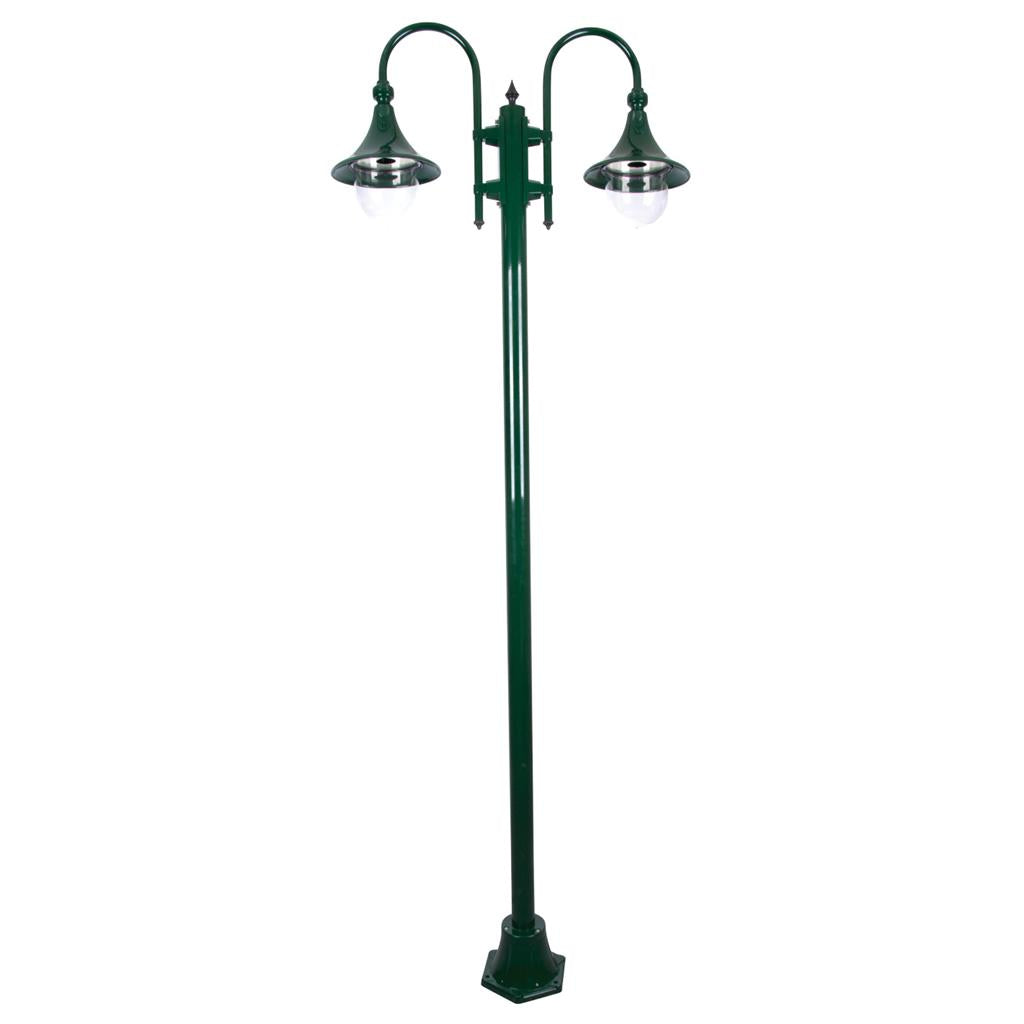Monaco 2 light die-cast aluminium and moulded acrylic lens twin head 2.4m post light. Made in Italy, assembled and powder coated in Australia.