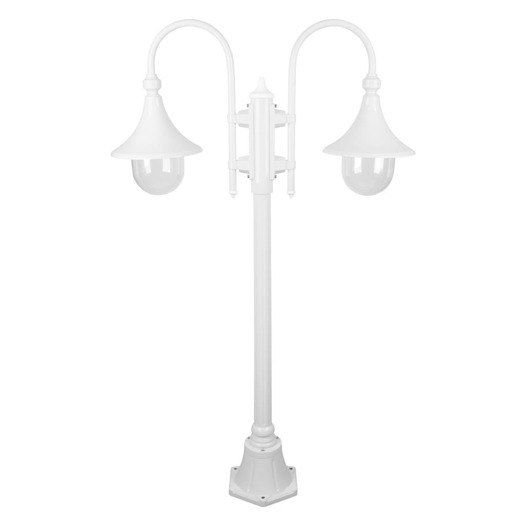 Monaco 2 light die-cast aluminium and moulded acrylic lens twin head 1.35m post light. Made in Italy, assembled and powder coated in Australia.
