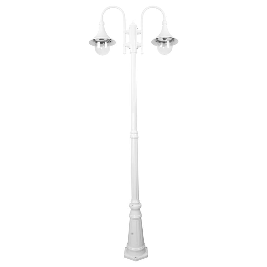 Monaco 2 light die-cast aluminium and moulded acrylic lens twin head 2.35m post light. Made in Italy, assembled and powder coated in Australia.