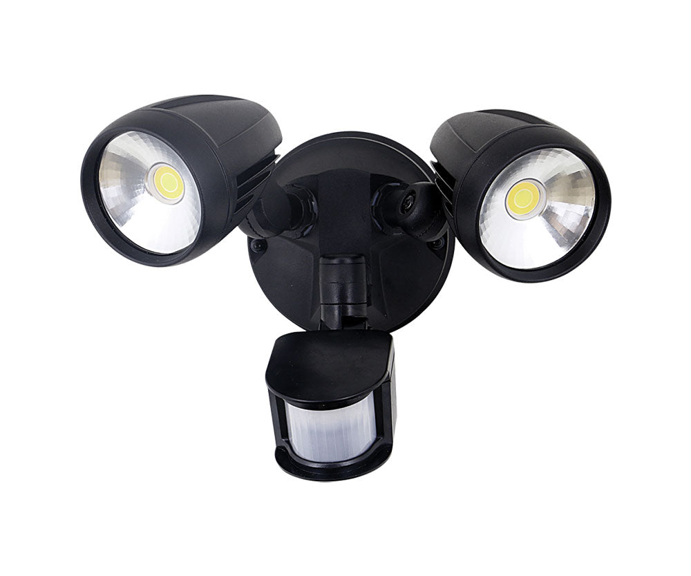 Muro 30 Watt Twin Head LED Spotlight with Sensor Black / Tri Colour