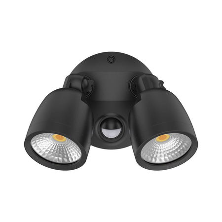 Muro Eco 20W LED Twin Head Polycarbonate Coastal Spotlight With Sensor Black / Tri-Colour